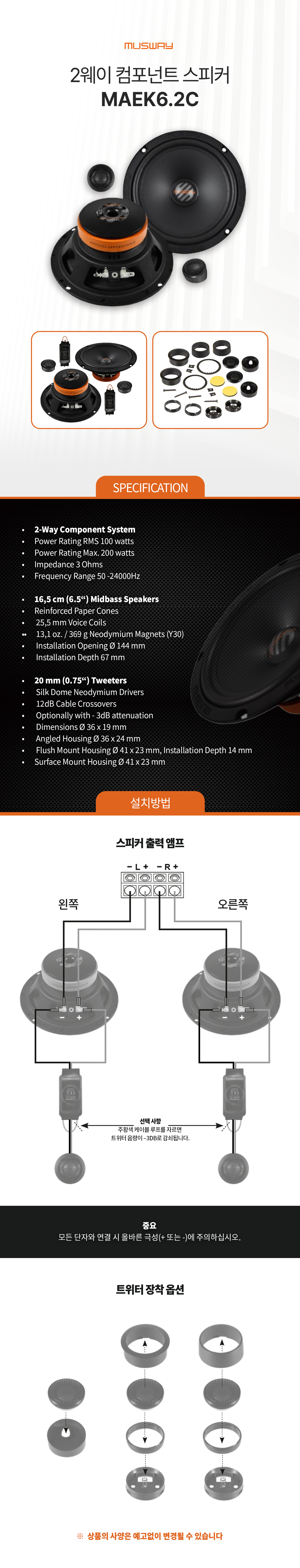 무스웨이 6.5인치 컴퍼넌트 스피커, MAEK6.2C